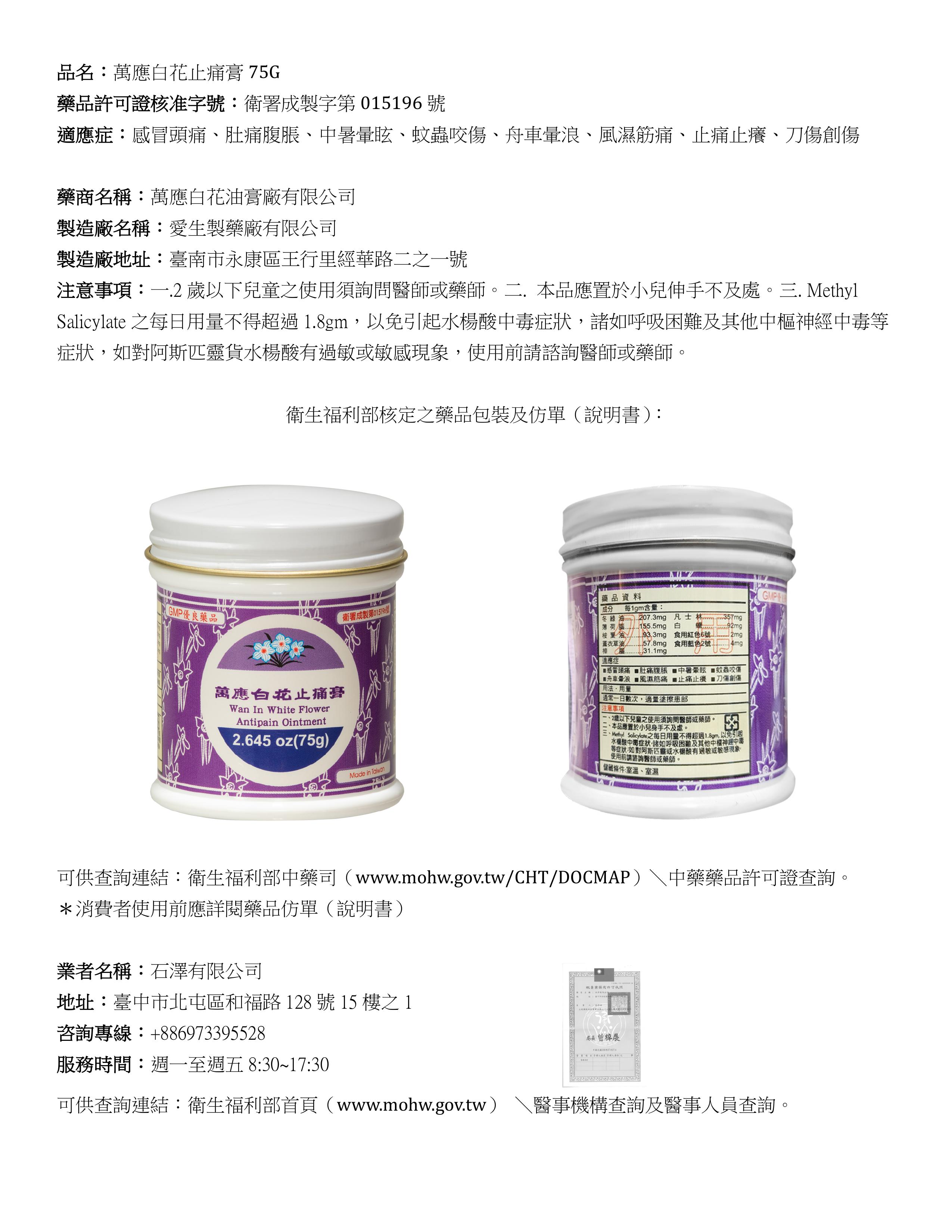 萬應白花止痛膏