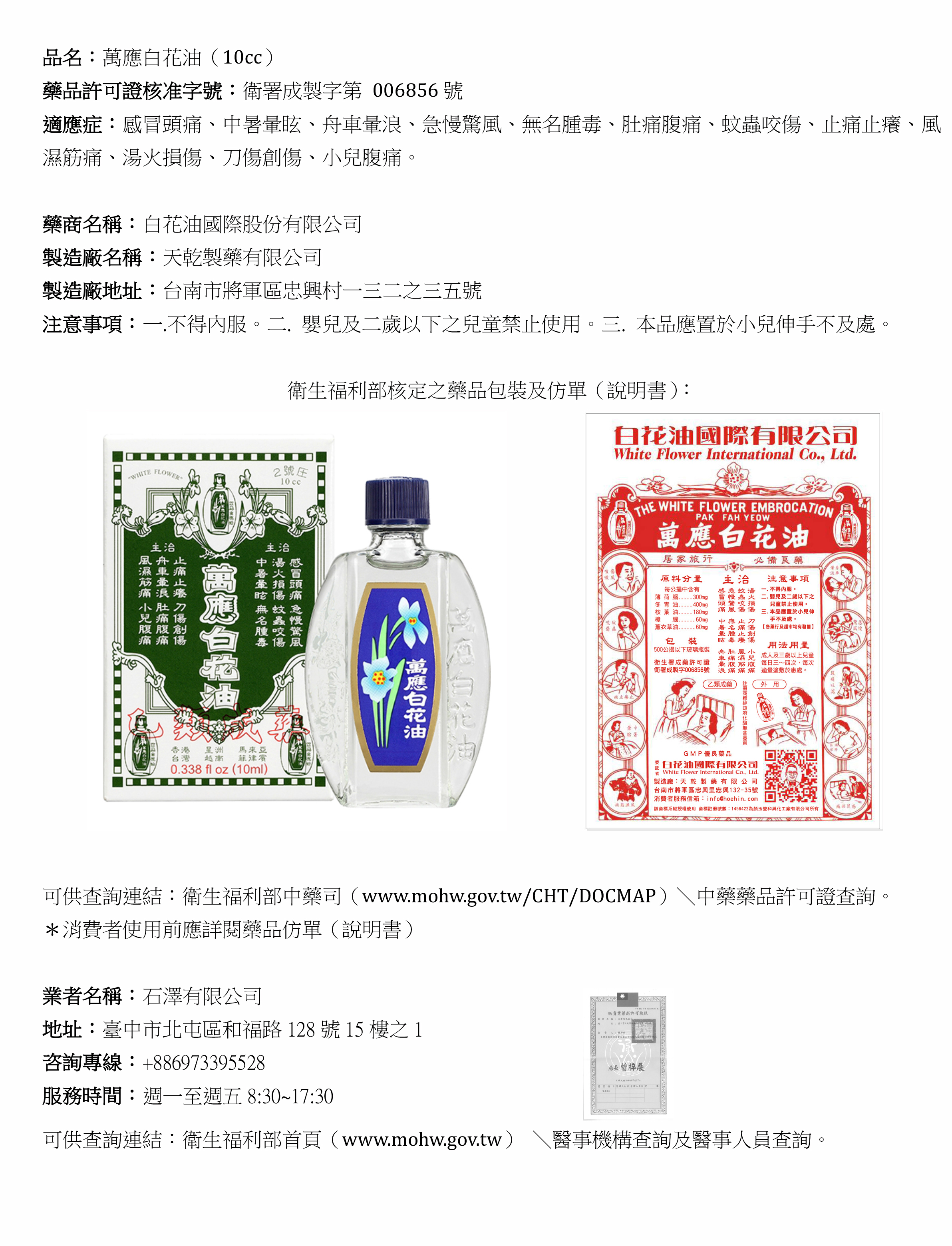 萬應白花油10cc